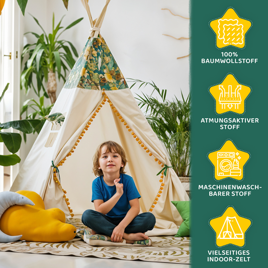 Tipi Spielzelt Dschungel | Abenteuer Kinderzelt aus Baumwolle – Rainbow Kids