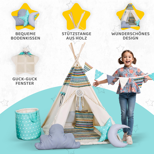 Tipi Spielzelt Echilein | Handgemachtes Kinderzelt – Rainbow Kids